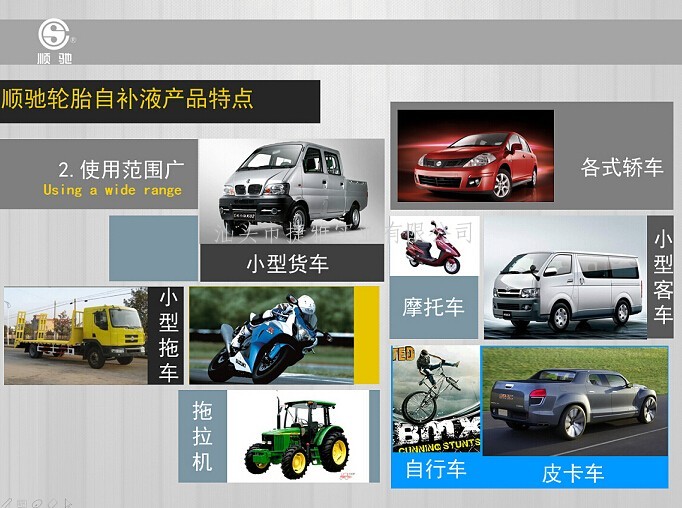 2-1.使用范围广:小型货车,小型拖车,拖拉机,各式轿车,小型客车,摩托车,自行车,皮卡车,电瓶车等等.